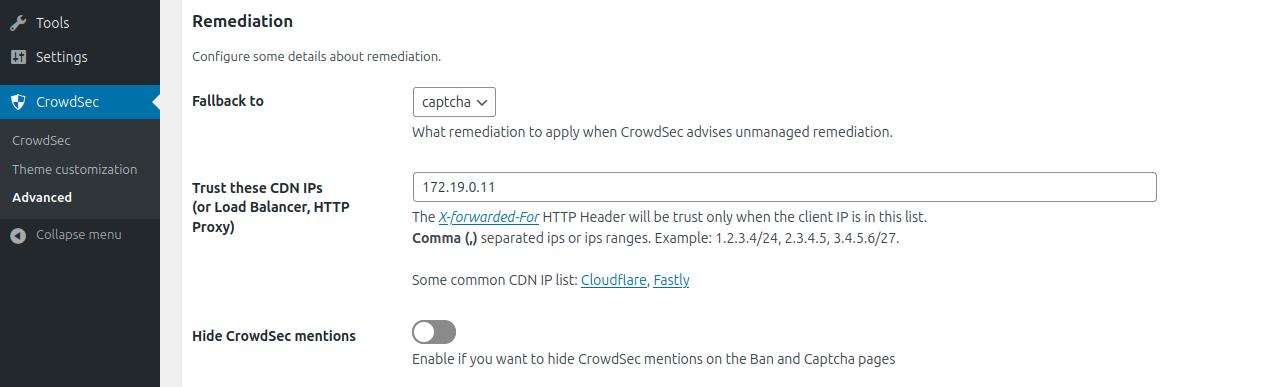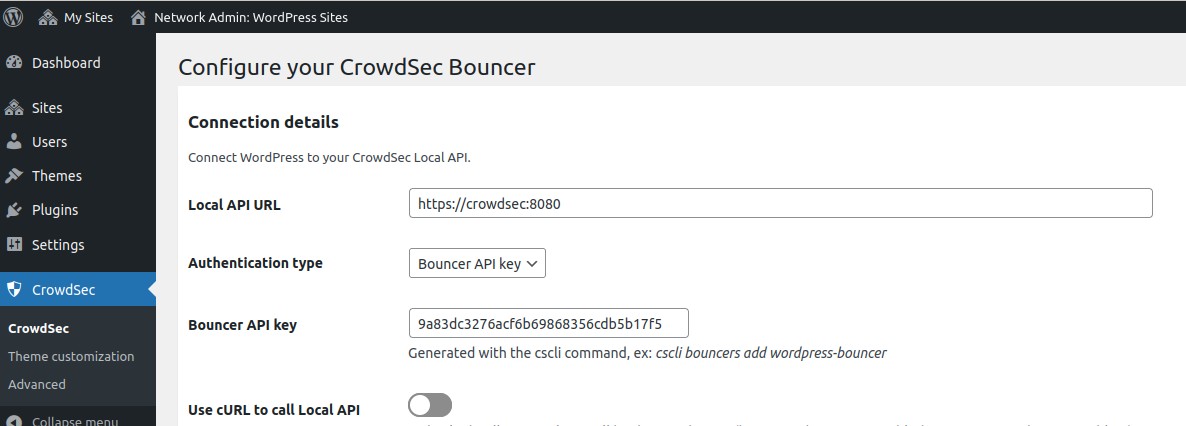 Please note that first and foremost CrowdSec must be installed on a server that is accessible via the WordPress site.