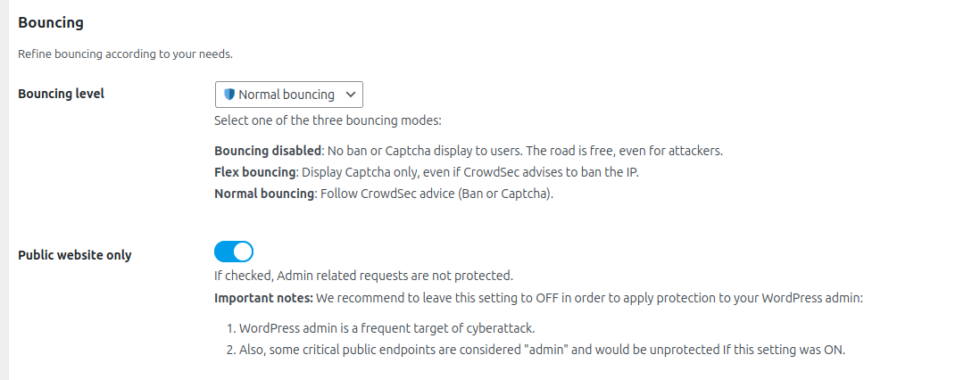 Choose if you want to apply CrowdSec directives (Normal bouncing) or be more permissive (Flex bouncing).